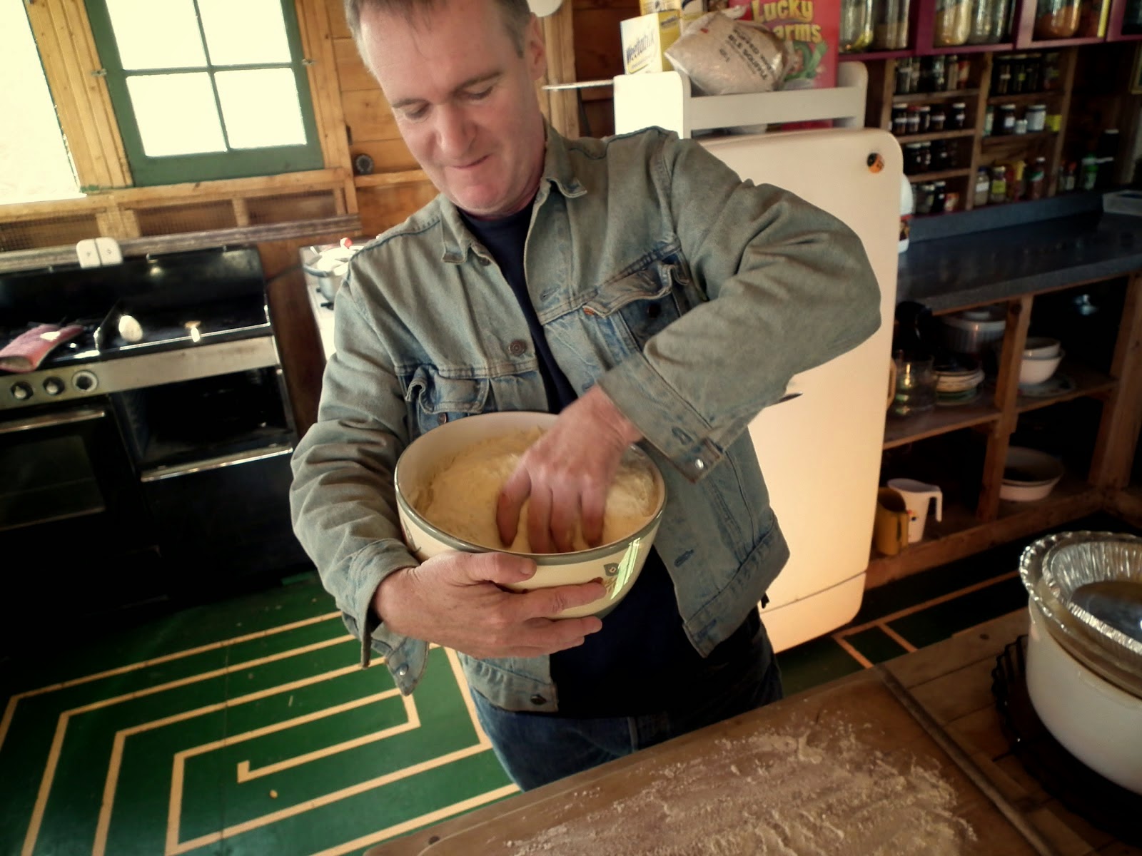 Bruce making bread on a visit to my farm